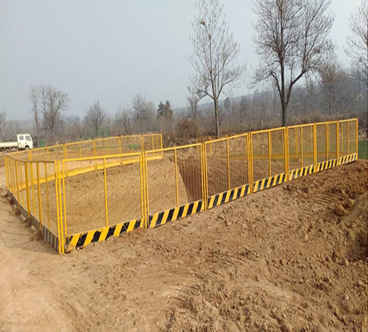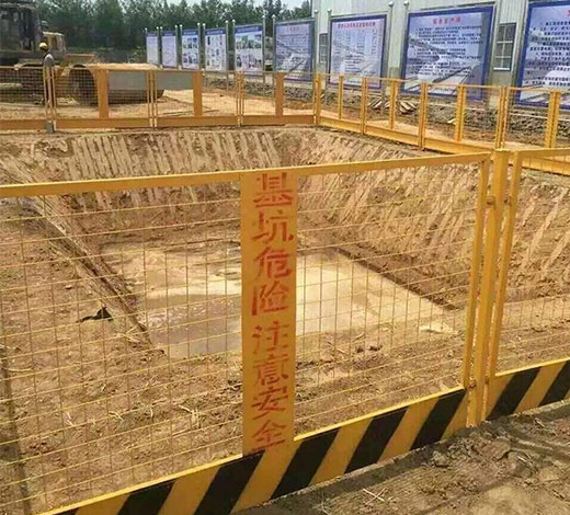 基坑圍擋護欄由防護網片和立柱組成?;訃鷵踝o欄防護網片由2cm×4cm方管焊接組成,單片尺寸1.1米×1.7米,兩端設有跨耳用Φ10螺栓與立柱連接固定,跨耳與上下邊緣距離為15cm。基坑圍擋護欄主要用在建筑施工現場臨邊安全防護,也廣泛用于配電檢修、電氣檢修、改建施工、交通、公司設置警戒線及其它止步場所等。起到分隔功能、阻攔功能、警示功能。我公司生產的基坑防護柵欄采用精致美觀:采用現在新調頻無縫焊接技術,使焊接點沒沒有缺點;抗性好:不怕磨損、不怕雨淋、抗老化;靈活性:地面使用膨脹螺絲固定,工程結束可拆卸重復利用。
