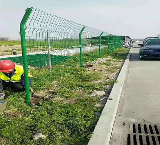 雙邊絲護欄網采用優良盤條作為原材料,雙邊絲護欄網經由鍍鋅、涂前底漆和高附著力粉末噴涂三層保護的焊接式網片,具有日久抗腐蝕、抗紫外線的特性。在這種護欄網的表面處理為鍍鋅和噴涂,也可以任選一種,頂端蓋有塑料蓋或防雨帽。根據環境和安裝方式不同,可選用預埋50cm、加底座等方式。將雙邊絲護欄網的網片和立柱靠螺絲和各類特殊的塑料或鐵的卡子連接。所有的螺絲均為自動防盜的。所用配件也可以按照客戶的具體要求來設計。