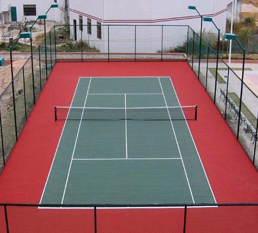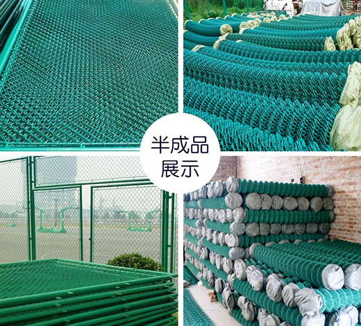 采用φ3.8鍍鋅線包塑網,網孔規格45MM×45MM,網高4 M,立柱用φ75鋼管,橫柱用φ60鋼管刷二遍防銹專用底漆,二遍墨綠色面漆,包塑網用包塑扁鐵壓緊,用鍍鉻螺絲固定于網架上,做一扇1200×2000MM單門。在基礎施工時,按照預埋件施工示意圖所標明的尺寸,要先預埋好預埋件。挖500*500的地槽,燈柱預埋件的尺寸為300*300mm,圍網預埋件的尺寸為 250*250mm。每個預埋件用4個12mm的鋼筋焊接固定,鋼筋的長度為400mm。鋼筋在端部彎起。 圍網由包塑網、立柱、橫桿以及連接構件組成。網高4米,所以在圍網中間設立一跟橫桿,用φ75鋼管,主要增強圍網的受力。圍網立桿的間距由球場四周范圍的尺寸決定,一般間距不超過3.8米。也不能太小,否則增加成本。