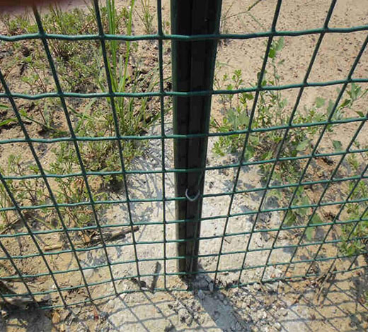 生產(chǎn)工藝: 采用優(yōu)良盤條作為原材料,經(jīng)由鍍鋅、PVC熱縮粉末浸塑,編制焊接而成的卷網(wǎng)或片網(wǎng),與柱主要用特制的塑料卡子或高強度鋼絲卡子連接。