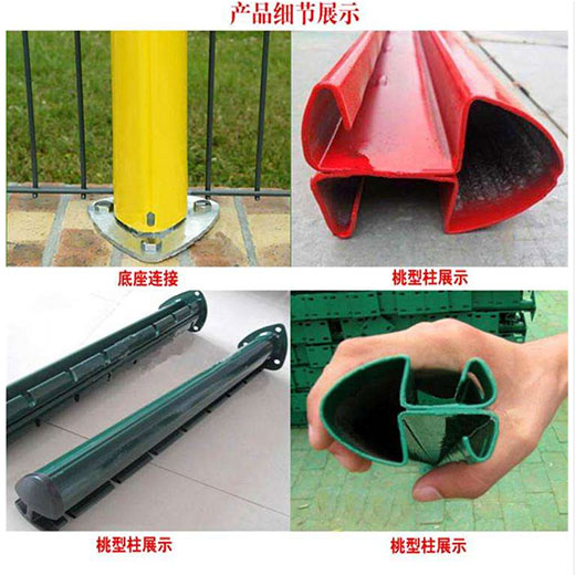 合適的折彎,造就了此種產品的美觀效果,而且表面采用多種 顏色的浸塑處理,如黃色,綠色,紅色,立柱與網片不同顏色的搭配更是令人賞心悅目,同時此種產品多采用帶底盤立柱,安裝只需打好膨脹螺栓,非常的快捷。