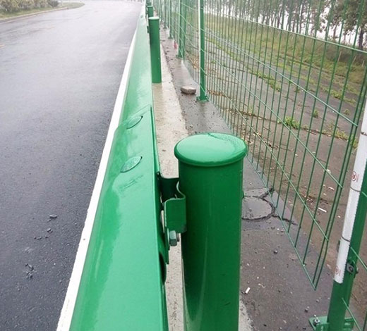產品用途:主要用于公路車道的隔離防護 波形護欄實用新型涉及一種公路中央分隔帶開口處用組合型波形板活動式鋼護欄,該護欄由兩片波形鋼護欄板及兩者之間固定夾放的兩根立柱構成,兩根立柱固定夾裝在兩片波形鋼護欄板之間。在公路正常營運時,該護欄利用插拔立柱可方便地插入開口處預先設置的插拔孔內,起到隔離和防護作用,同時與公路外邊上的護欄帶相呼應,整齊劃一,美觀配套。